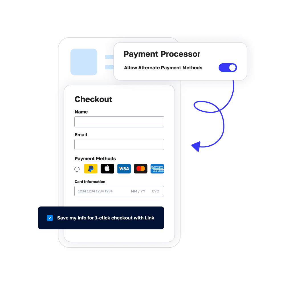 In partnership with Stripe’s world-class payment processing technology, we’ve created One-Click Checkout by Stripe. Your customers can leverage their securely saved credit card information and complete purchases within seconds with just their email address, even if they’ve never purchased from you before.