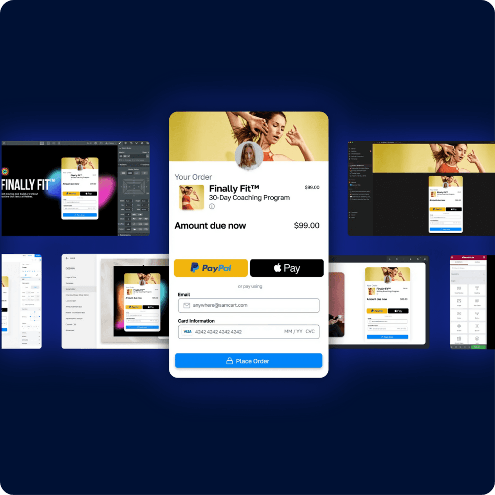Checkout Anywhere’s embedded and express checkout features are the standard for online checkout these days, and they’re supercharged by SamCart’s existing suite of conversion-boosting features like one-click upsells, order bumps, and more.