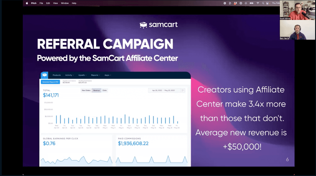 This is why affiliate marketing or other means of referrals can be such a monumental win for your business. On our proprietary Affiliate Center, creators using affiliates make 3.4x more than those that don’t. On average, they make upwards of $50k or more in additional revenue. Some are even making six figures with only 3-5 solid affiliate or referral partners who regularly invite them on their podcast or send out affiliate marketing materials for their business.