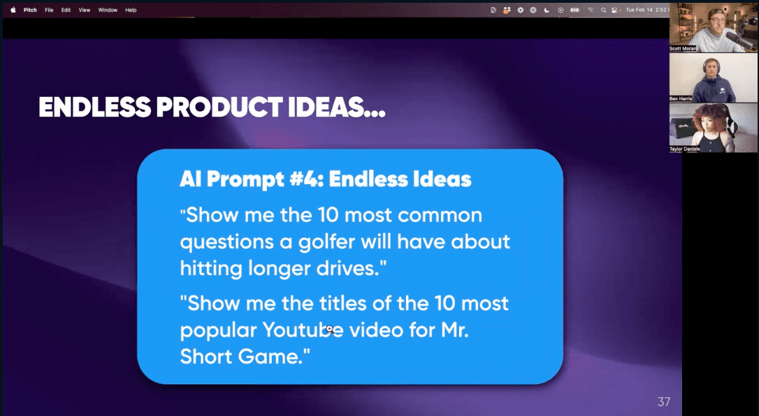 The possibilities for new products and services are endless when you start with using AI as an idea generator, but remember: We’re not copying and pasting directly from AI. It’s a launchpad to greatness, not the word of truth.