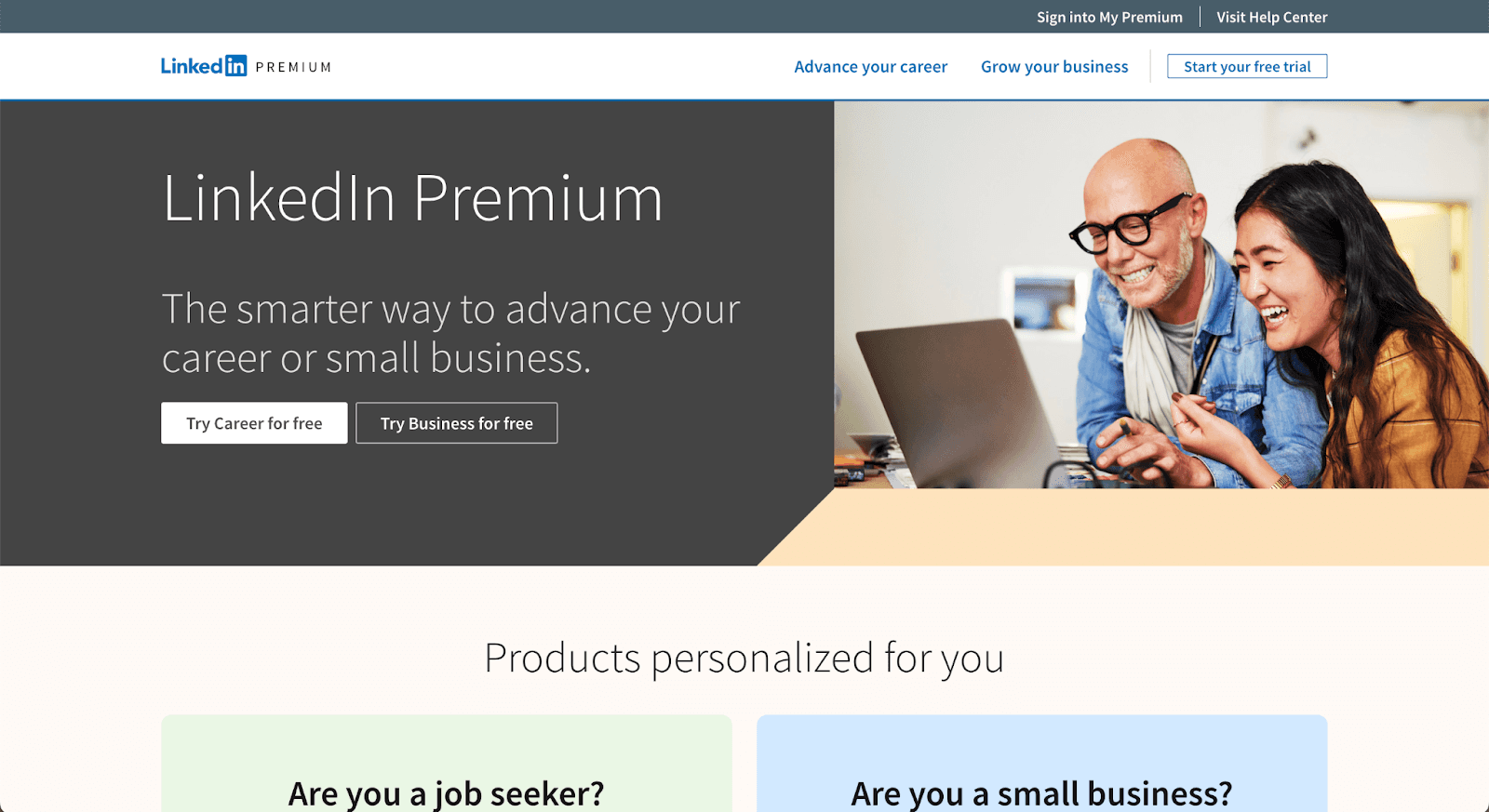 LinkedIn's landing page is designed to convert businesses into advertisers by: