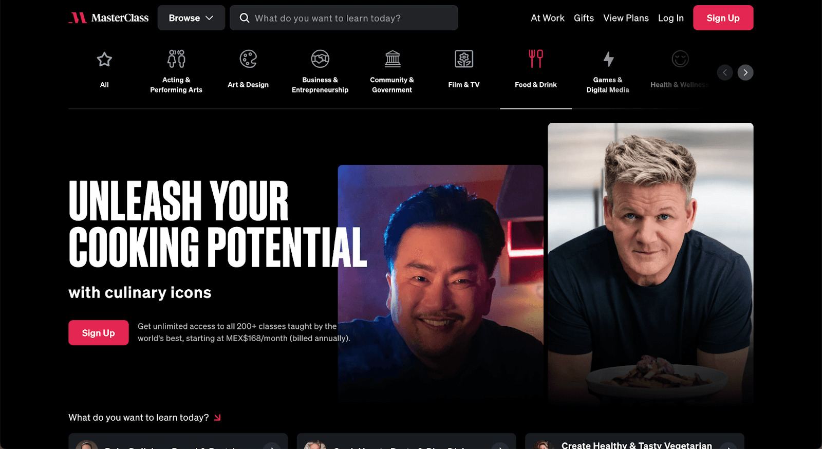 Masterclass also has one of the best examples of landing page models. You can find the following elements: