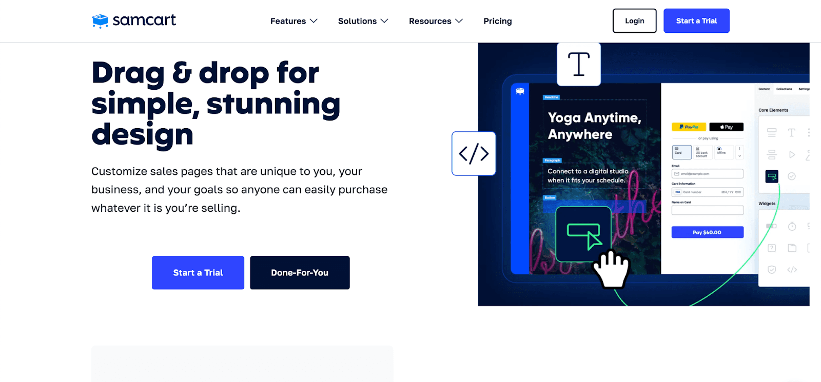 Create conversion-focused pages and boost sales by 30% or more with SamCart’s checkout platform that completes purchases in as little as 8 seconds. Get started now.