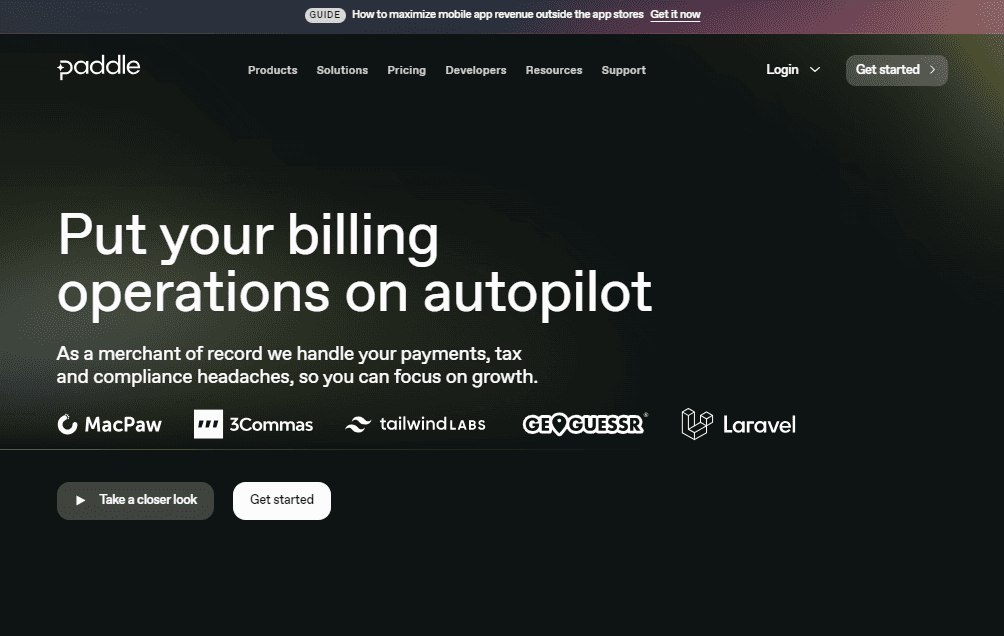 Paddle specializes in payment processing for SaaS and digital goods businesses. It simplifies global payments by handling tax compliance, fraud protection, and customer support.