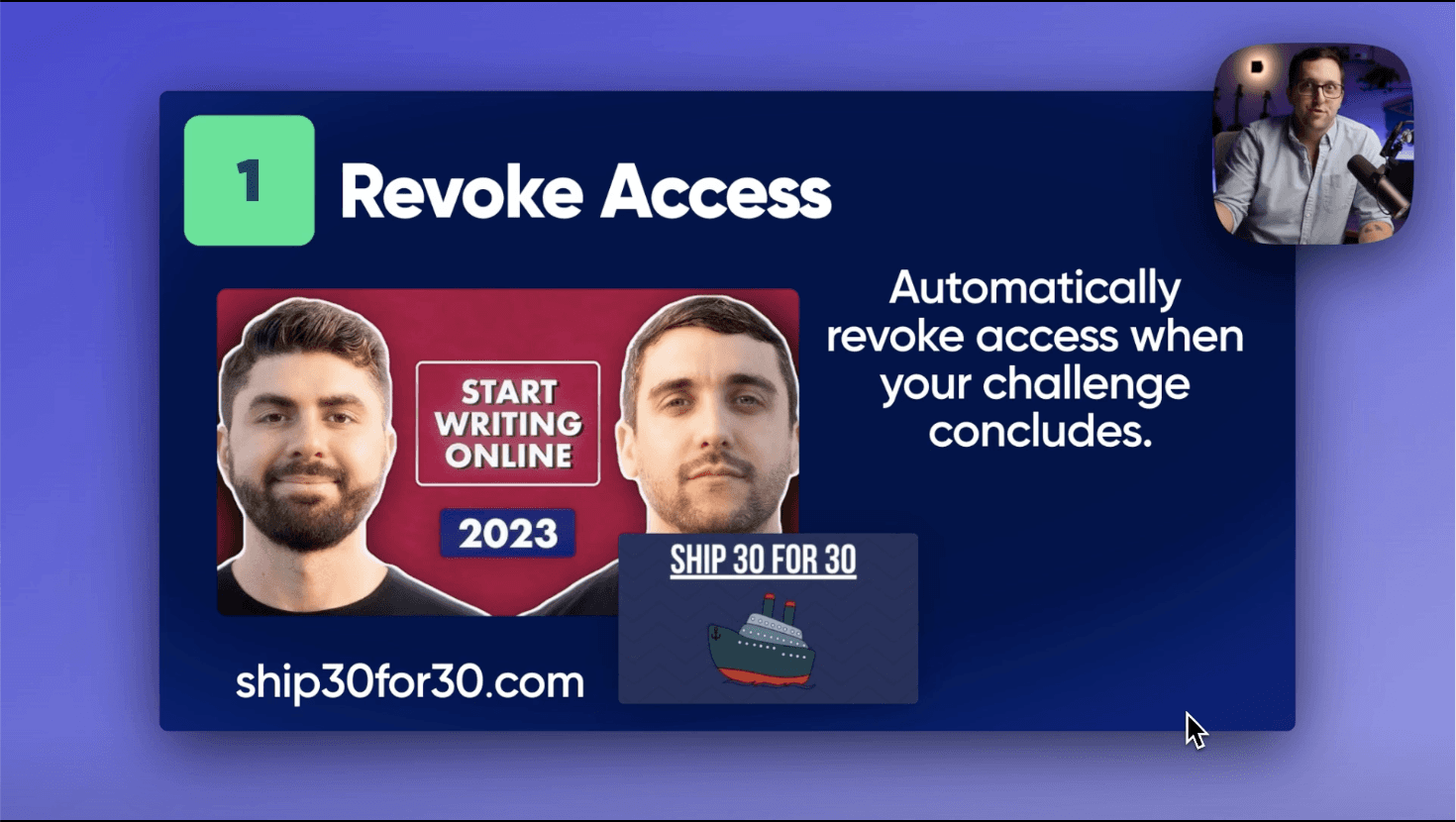 Brands like Ship 30 for 30 who run limited challenges or expirational experiences will need to ensure that customers can no longer access content or a community once that experience ends.
