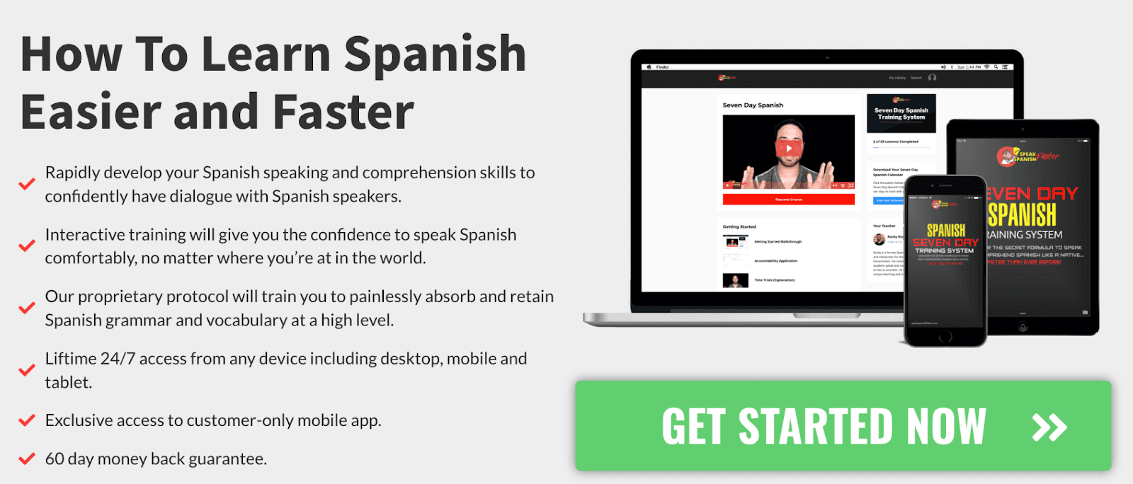 He’s leveraged the Agora model – a philosophy that generates as many customers on the front end as possible by using low-ticket items – to get people in the door. For his main focus, Speak Spanish Faster, that perfect price is $67 – a price he landed on after tons of testing.