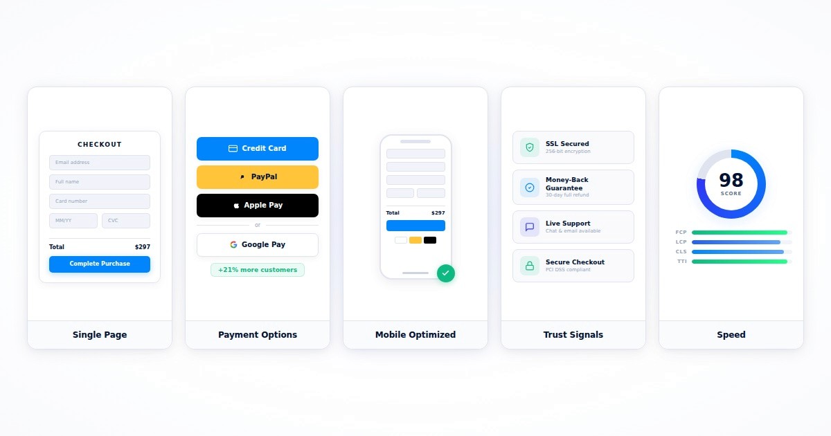 Speed. A slow checkout page loses buyers before they enter their card number.