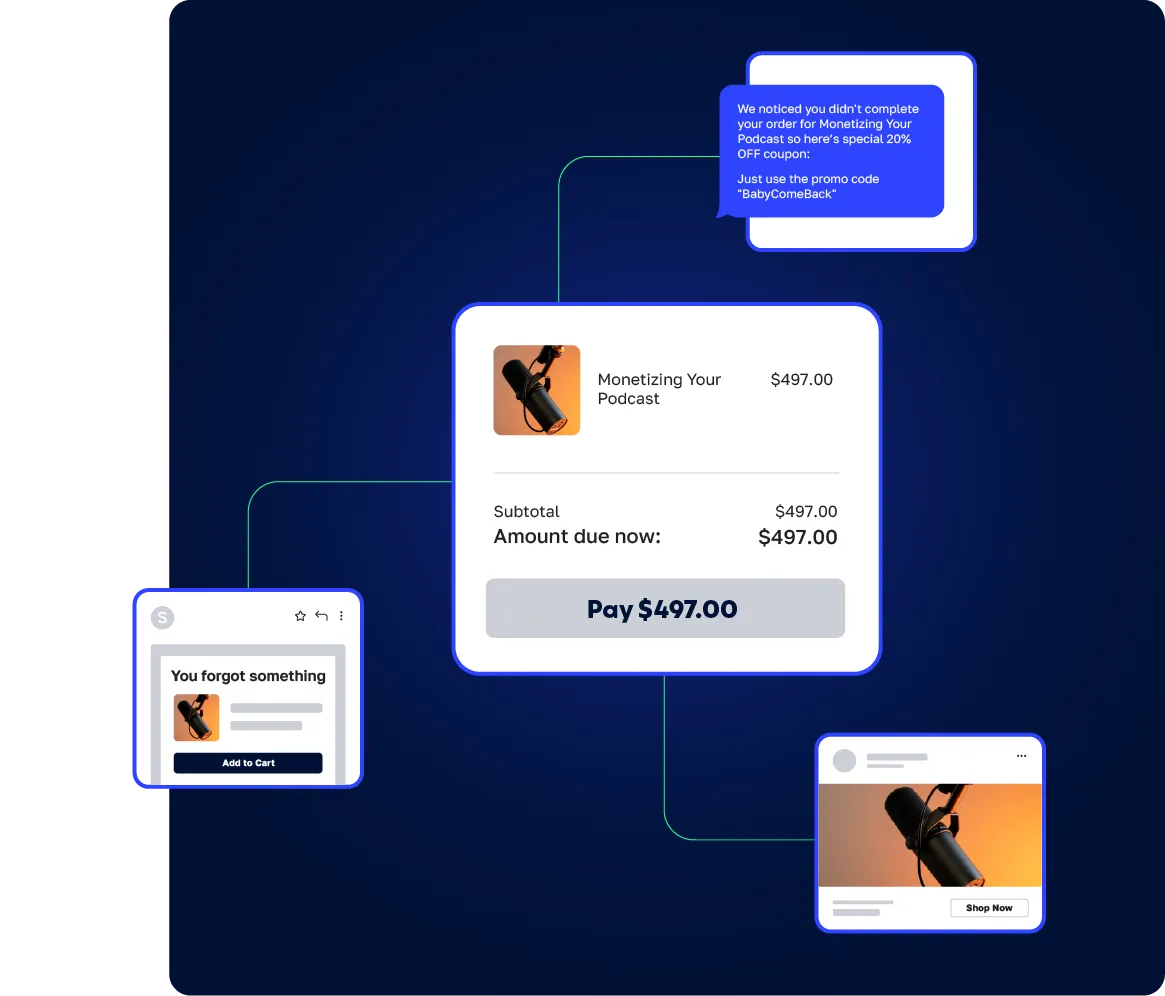 Use order bumps, upsells, and add-ons to not only recover lost sales, but make them even more profitable than they would have been. Use coupons, discounts, and freebies to make the offer that much more enticing.