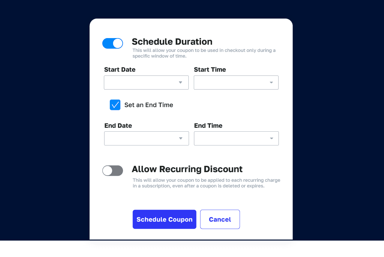 Plan promotions with specific start and end dates. Now, you have the flexibility to run time-bound campaigns, creating a sense of urgency and enhancing the effectiveness of your marketing efforts. By making deals scarce, you encourage customers to grab the amazing offers you have.