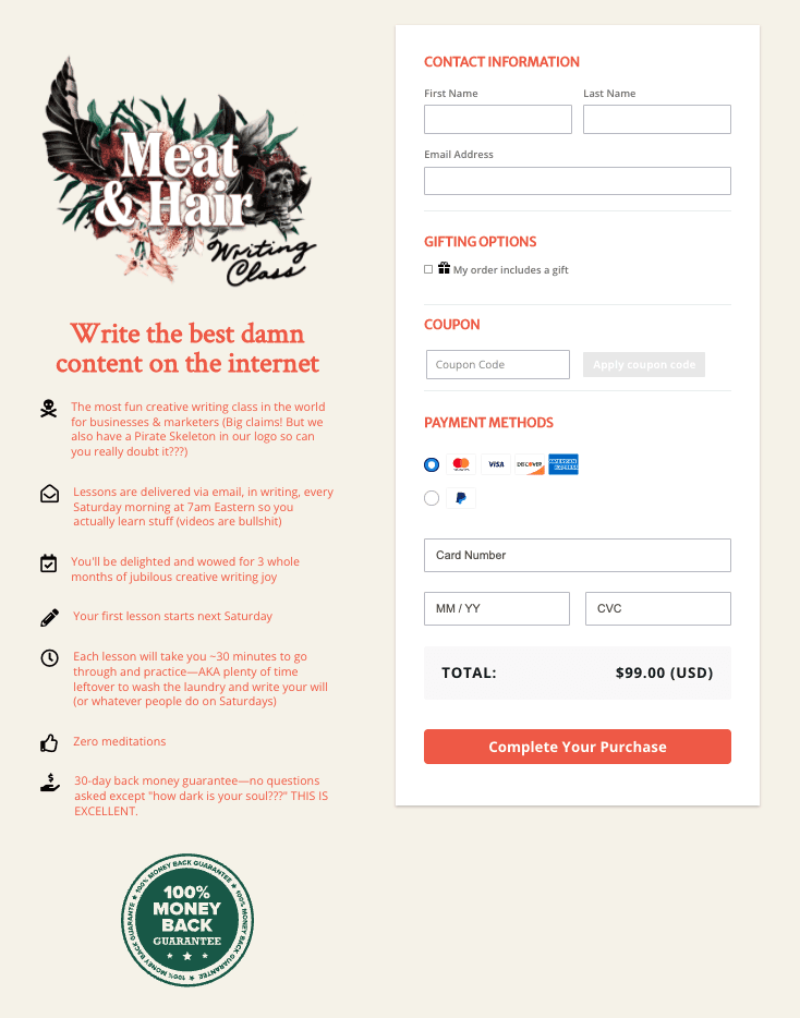 Ash Ambirge is a writer's writer who uses SamCart to prioritize ease to sell the best damn Meat & Hair online.
