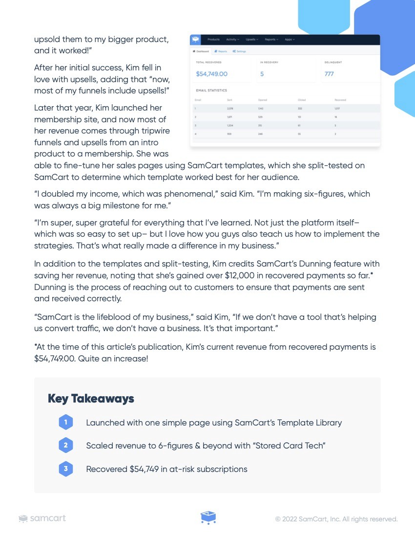 Kim Jimenez Recovered $54,749 Without Lifting a Finger: A SamCart Case Study