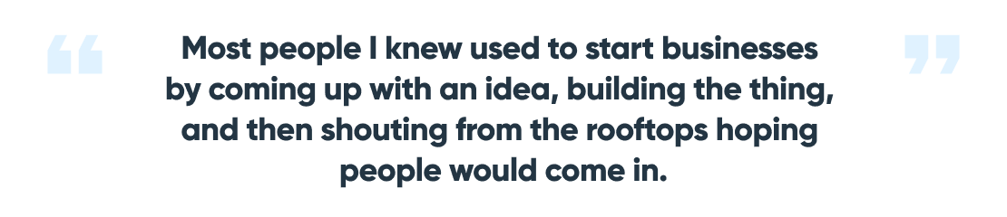 You only create things based on what it is that you know people need help with and that in of itself will get you 90% of the way.” Having that knowledge can give you a leg up on the competition. “Most people who I know at least back in the day used to start businesses by just coming up with an idea in their head, building the thing and then kind of screaming and shouting from the rooftops hoping people would come in.”