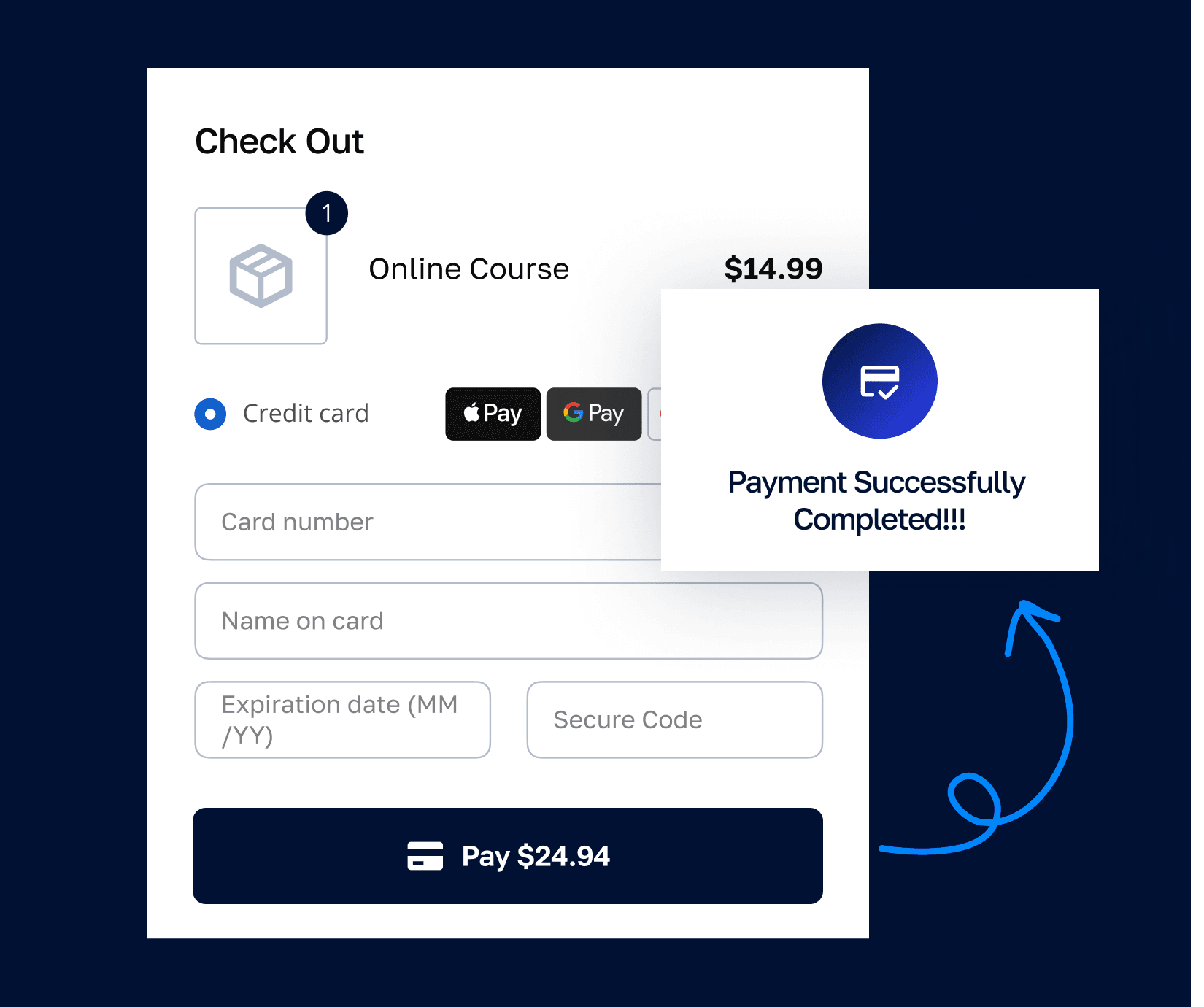 No more emailing files, sending Dropbox links, or worrying about piracy. As soon as a customer completes checkout, SamCart automatically delivers their purchase. You can upload files directly, gate course content, or grant access to a membership area.