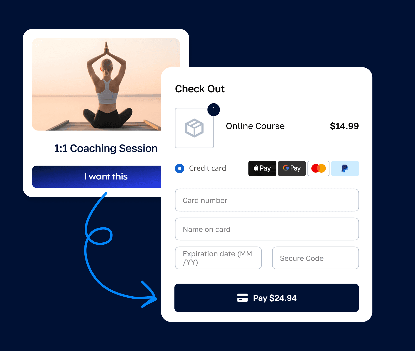 Deploy a lightning-fast checkout wherever you need it – no coding or design skills required.