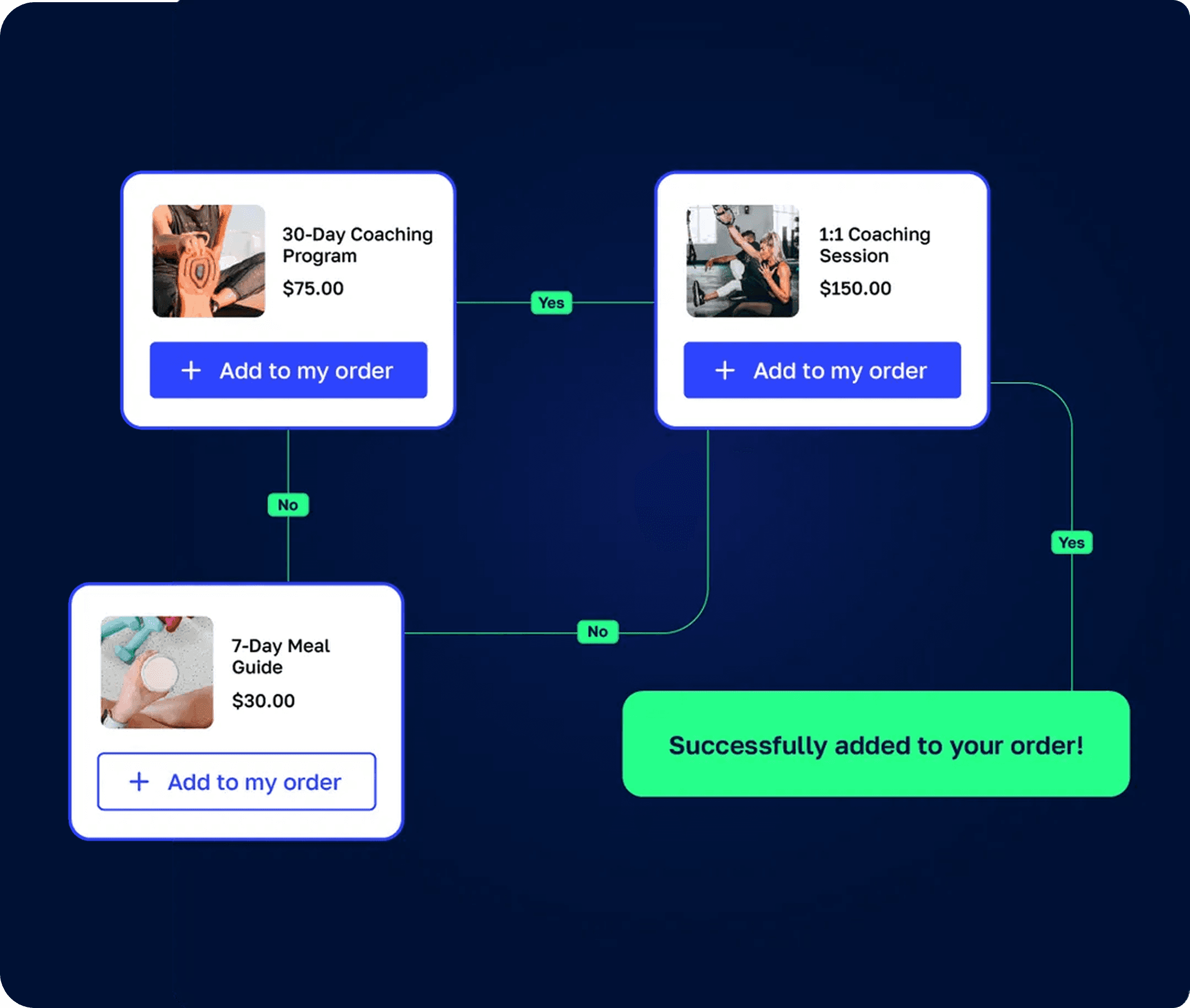 One click upsells that turn a single $10 ebook into a $40 order without extra effort