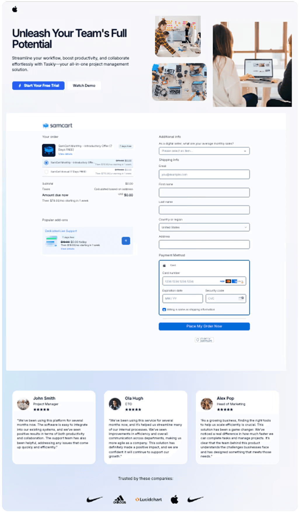Try SamCart’s winning design features free for 7 days.