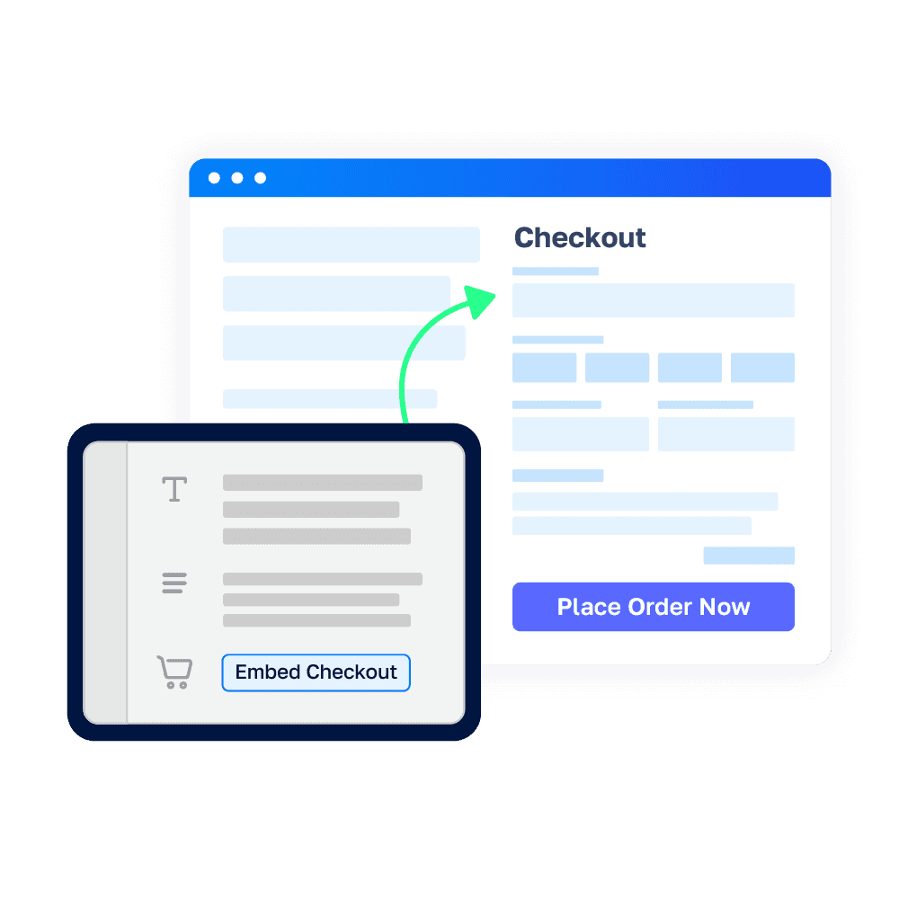 Checkout is automatically embedded and fully customizable. Choose exactly which product to sell right inside the builder