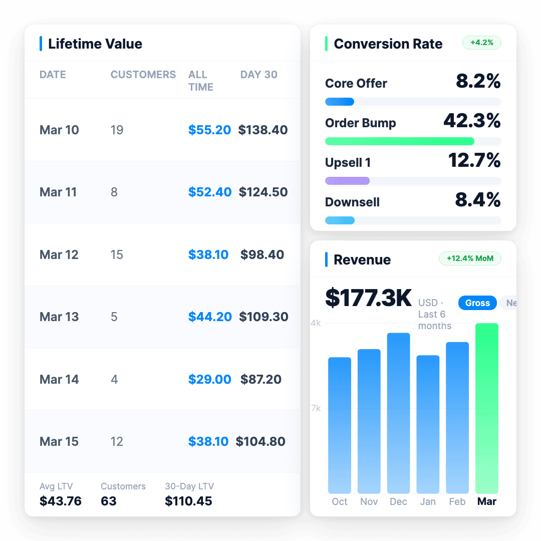 Track subscriber LTV, churn, and which offers drive the most recurring revenue.