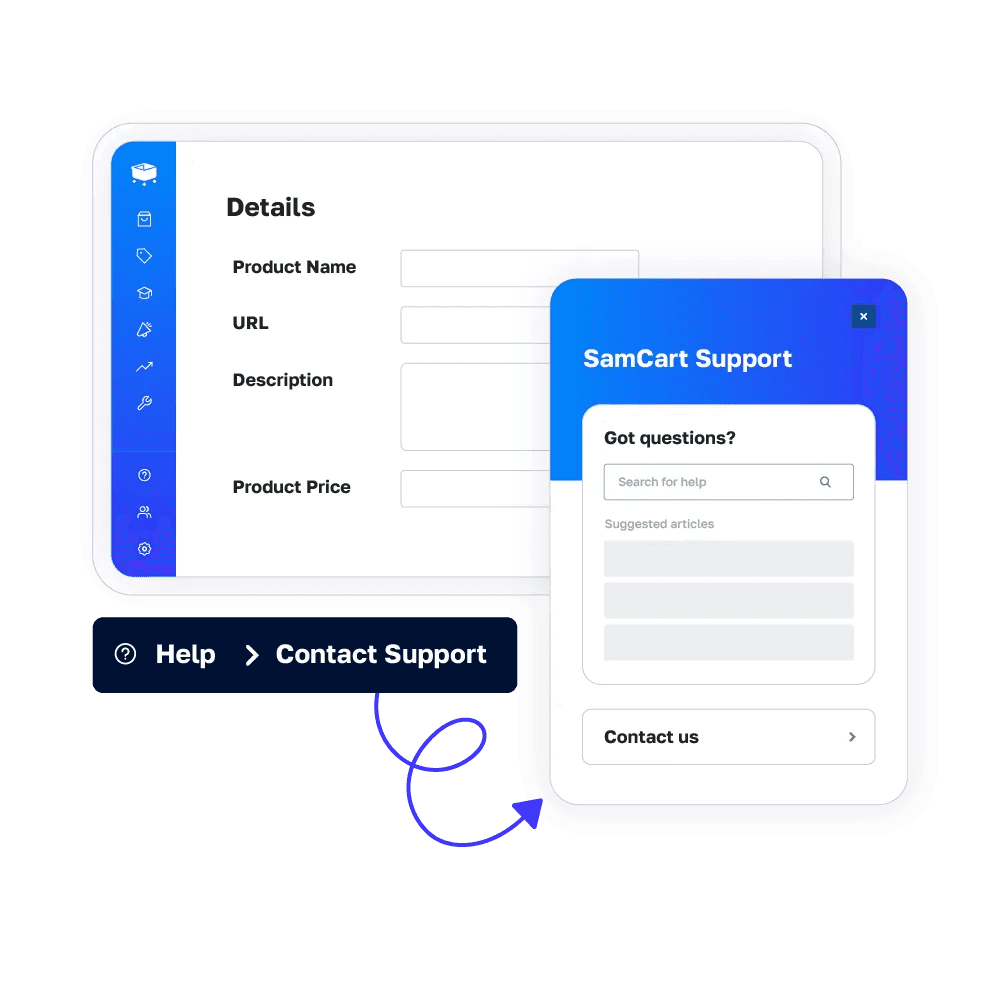 Your focus should be on delivering results for your customers and their goals. That’s why we made SamCart so user-friendly and, when you need it, our team will be there to provide guidance, support, and troubleshooting. Scroll down to learn how you can kickoff your SamCart experience with a free strategy session from our team of eComm experts.