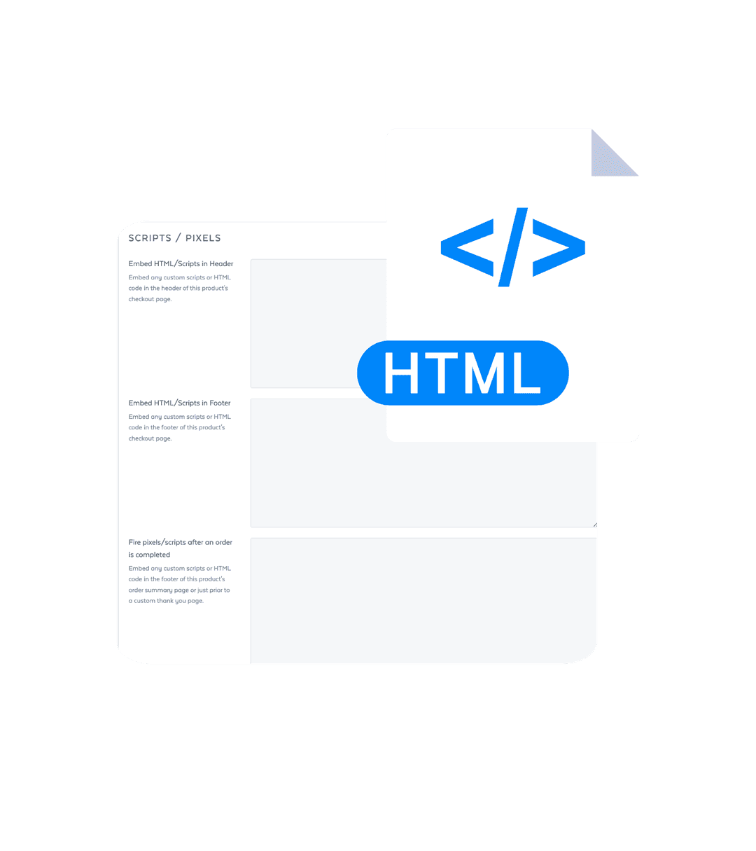 Need to customize tracking for specific products or offers? You can customize your conversion tracking with product-level scripts. SamCart’s product-level settings allow you to add custom code to individual products. Easily Embed HTML/Scripts in the header, footer, or to be fired after a purchase is completed
