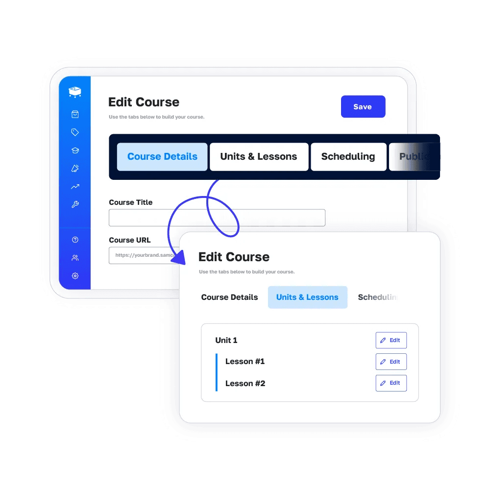 Create an entire online course within minutes that your students will love with elements like content tiers, lessons, worksheets and quizzes, and dripped content they’ll receive over time.