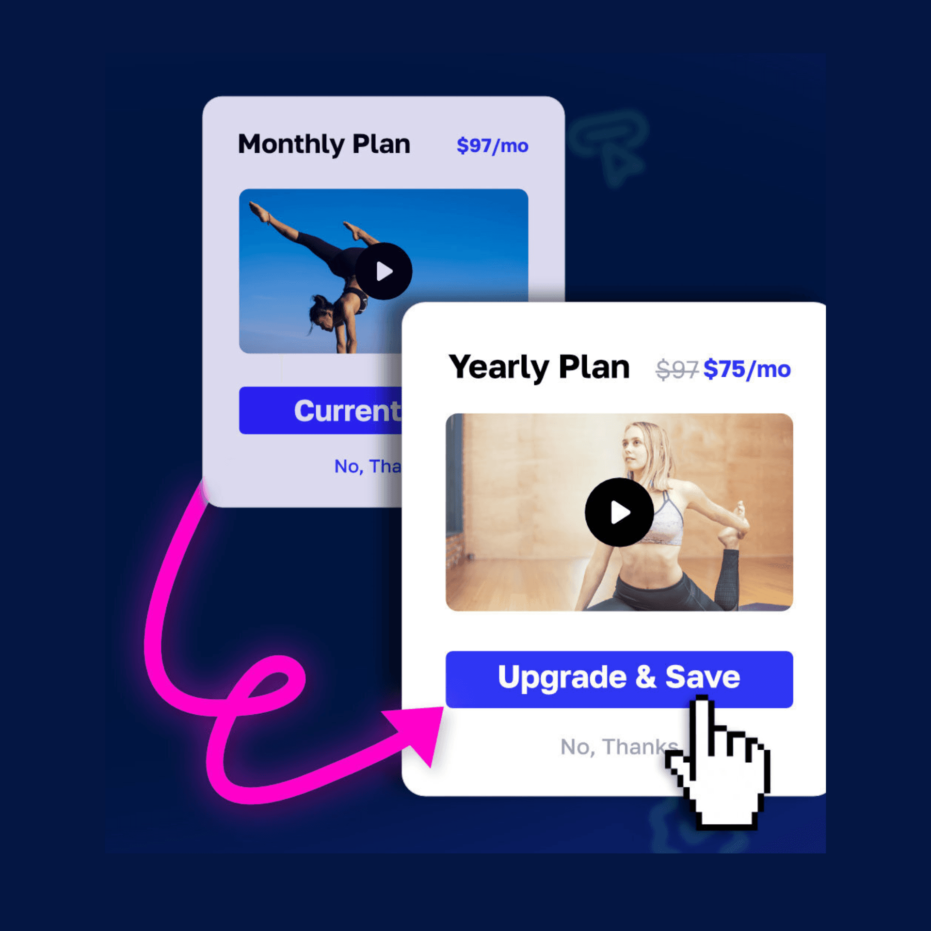 Present each new customer with a simple offer to upgrade their order. Customers can accept that upgrade with a single click! This “card on file” technology is proven to double average order value.