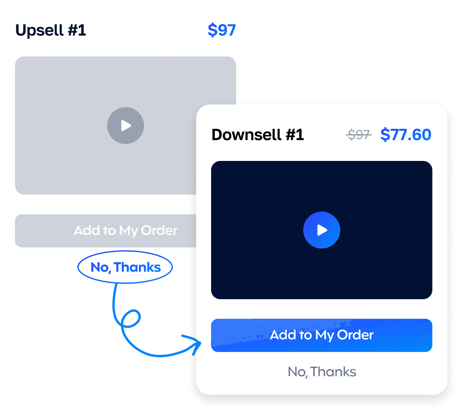 Sometimes upsells are a little too expensive for a buyer. Utilize downsells to present an additional lower-priced offer and capture more revenue.