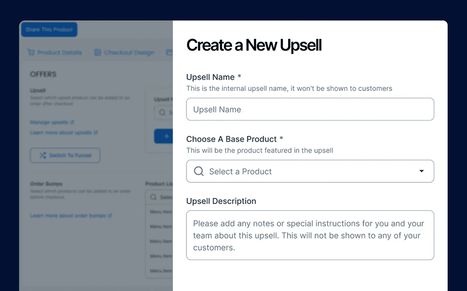 Easily add an upsell to a product without ever leaving product settings and without having to create a new funnel. Simplify the process to add more revenue with every sale you make.