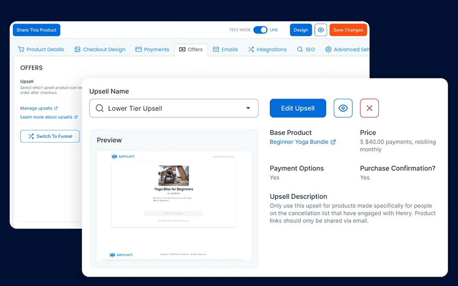 Can I customize my upsell and downsell offers with SamCart?