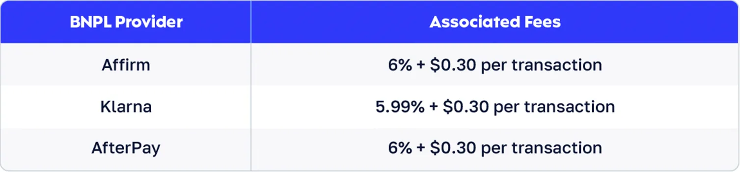 The only fees associated with BNPL transactions are those charged by the BNPL providers themselves.